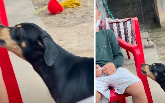 Um vídeo que circula nas redes sociais tem divertido os internautas ao mostrar uma cena de cumplicidade envolvendo uma criança e a cachorrinha da família.