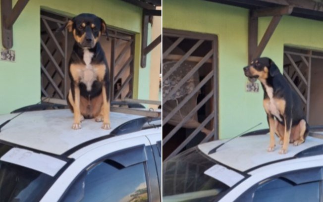 Jackson Ferreira se deparou com uma cena pouco comum: um cachorro acomodado sobre o capô de um carro, como se aquele fosse o lugar mais confortável da cidade para relaxar.