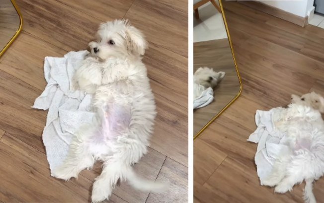 Um vídeo fofo tem encantado os internautas ao mostrar um hábito curioso de um cachorro da raça Maltês dentro de casa.