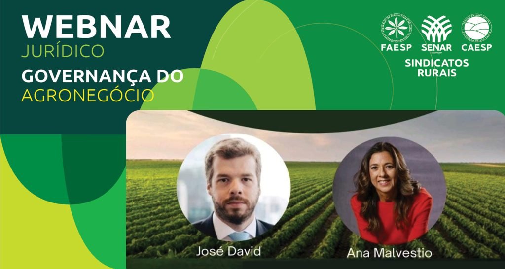 Para reforçar essa importância, o gerente jurídico da Federação da Agricultura e Pecuária do Estado de São Paulo (Faesp) e presidente da Comissão Especial do Agronegócio da OAB/SP, Thiago Soares, convidou a conselheira de Administração Ana Malvestio, e o advogado, conselheiro e professor José David, para a realização de um Webinário sobre o tema, promovido pela FAESP em parceria com a Comissão Especial do Agronegócio da OAB/SP, voltado a um público amplo, composto por produtores rurais, advogados, representantes de sindicatos e demais interessados em aprofundar seus conhecimentos sobre a temática. A proposta era mostrar como a governança influencia no dia a dia da atividade rural.