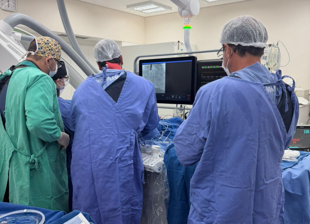 O procedimento contou com a atuação de um “Heart Team”, uma equipe multidisciplinar essencial para intervenções cardíacas dessa complexidade, reunindo profissionais de diferentes especialidades. Integraram a equipe os cardiologistas intervencionistas, Ricardo José Tofano e Marielle Rodrigues Martins, os cirurgiões cardíacos Sideral Ferreira Alves e Diego Gaia, o ecocardiografista Marcelo Peron e o anestesista José Luiz.