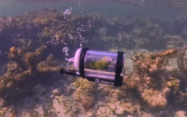 Durante o passeio em baixo d’água, Bebe pareceu manter a calma. O dono disse que reconhece as reações do animal e disse que o próprio papagaio entrou no tubo sozinho.