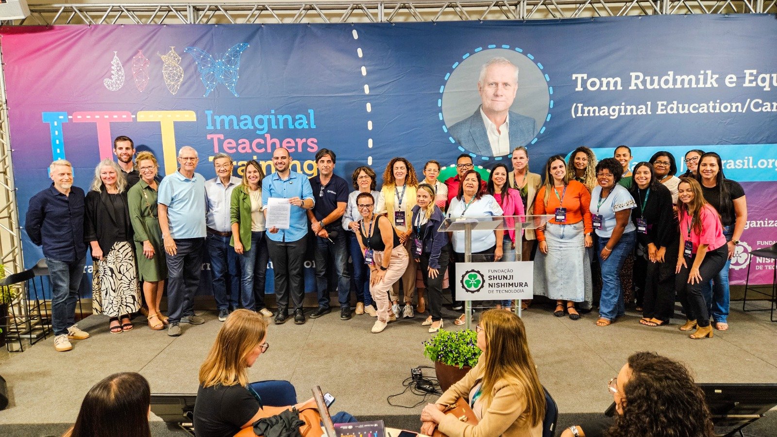 Participaram da assinatura, o prefeito de Pompeia, Diogo Ceschim, a secretária municipal de Educação, Claudine da Rocha Pinheiro Bezerra, o presidente do IDF – Instituto de Desenvolvimento Familiar “Chieko Nishimura”, Jorge Nishimura, o superintendente da Fundação Shunji Nishimura de Tecnologia, Elvis Fusco e o fundador da Imaginal Education Canada e da Master’s Academy & College, Tom Rudmik.